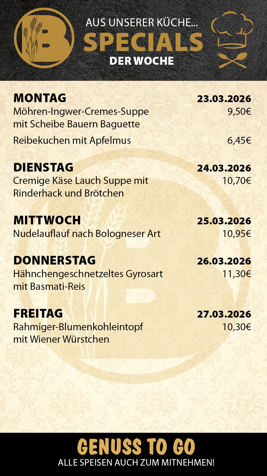 Ob Mahlzeit am Mittag oder Snacks, wir ändern laufend unsere Angebote, um Ihnen viel Abwechslung zu bieten.
