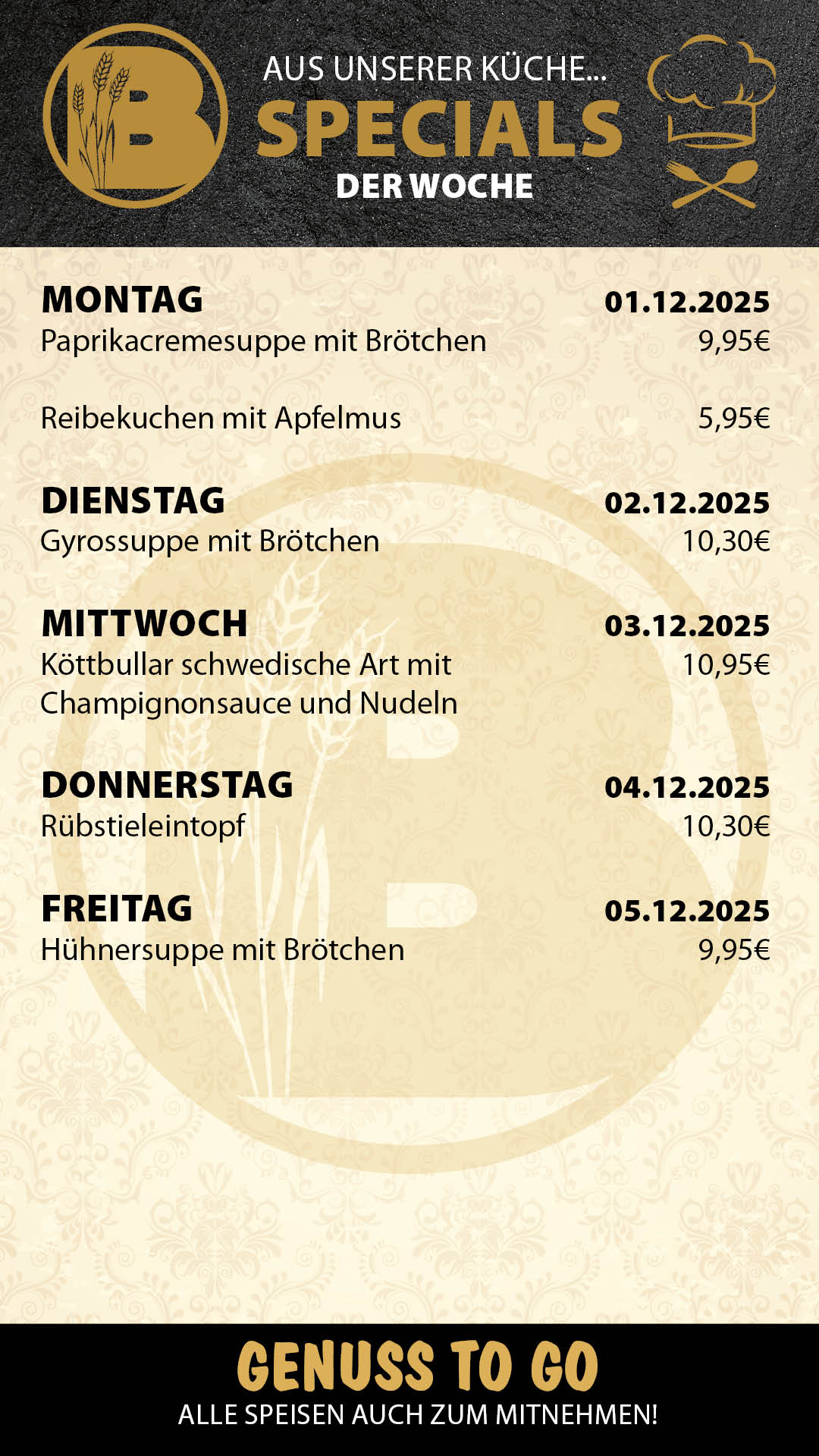 Auch warme Speisen bieten wir an. Die Gerichte ändern sich regelmäßig und sind auf unserer Speisenkarte zu finden.